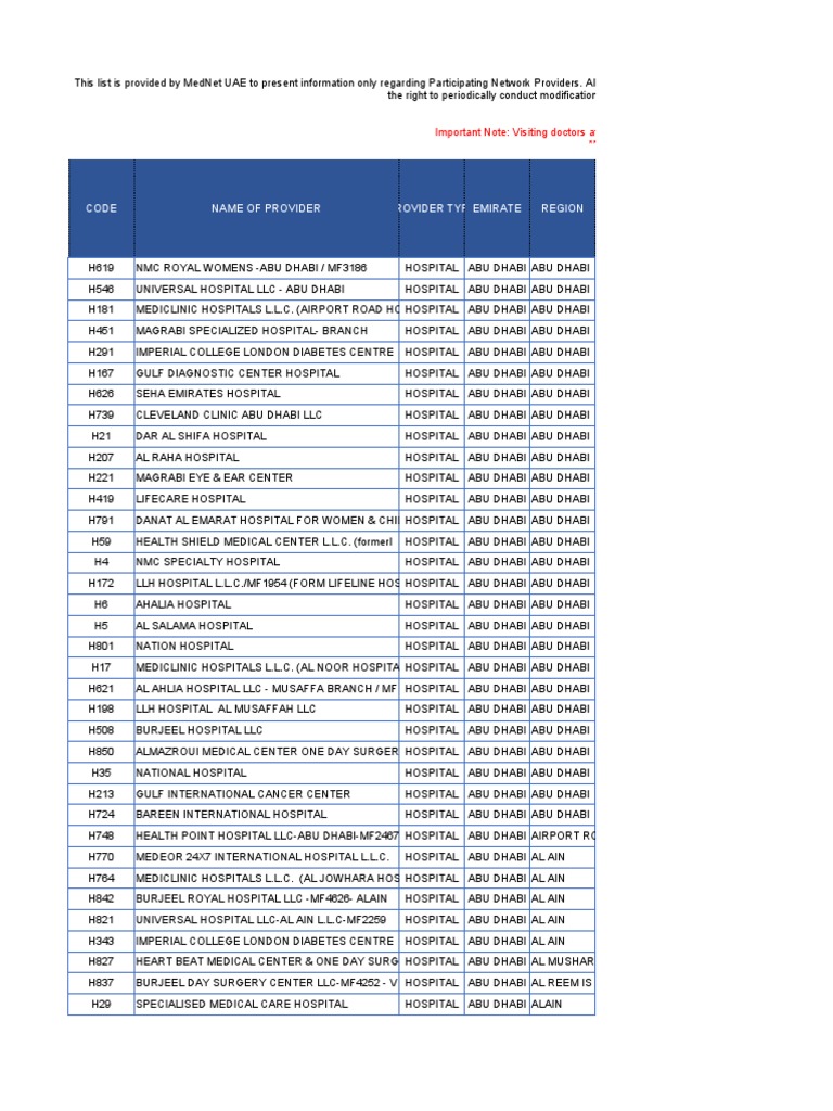 11 Mednet Network List APRIL 2020 Clinic Dubai